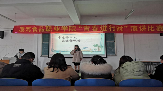 为深入贯彻落实习近平新时代中国特色社会主义思想和党的十九大精神,加强我院大学生的思想政治教育工作,畅想时代主旋律,培养同学们的道德情操,丰富我院大学生校园文化生活,由我校团委会、校学生会组织策划的“第七届校园文化艺术节‘青春进行时’演讲比赛”,于2020年11月30日——12月7日成功举办。