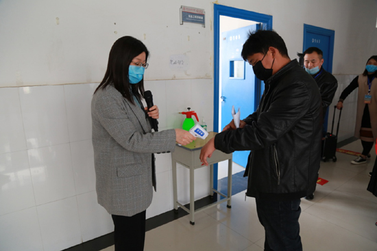 校门口临时隔离室医务人员对入校“发热”学生进行询问登记