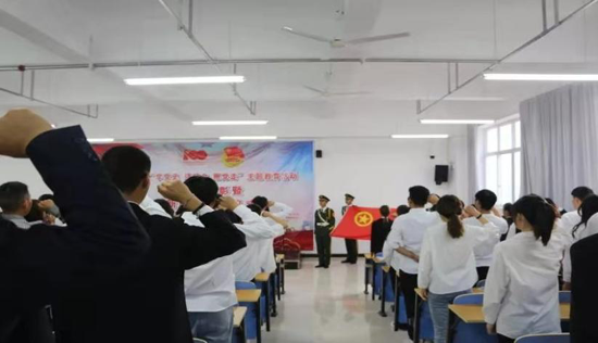 党委副书记程东阳教授对新团员表示祝贺,并提出:希望大家加强文化学习和道德修养,提高自身综合素质,做一个拥有阳光心态、富有责任意识的优秀团员,并勉励大家谨记入团誓词和学校校训,明确目标,奋力拼搏,圆梦同盛,圆梦人生!