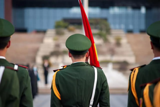 伴随着雄壮的《义勇军进行曲》,我院国旗护卫队迈着整齐的步伐,护卫着五星红旗走向升旗台。鲜艳的五星红旗缓缓升起,全体师生行注目礼表达对国旗的深深敬意。