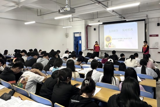学院团委于9月26日下午在教学楼H508多媒体教室组织全体团学干部进行“反邪教”宣传活动。