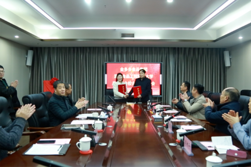12月9日下午,金多多食品集团与漯河食品工程职业大学在图书信息中心702会议室举行产教融合校企合作交流会。金多多食品集团总经理马红帆,漯河食品工程职业大学执行董事长王百木等出席会议。相关二级学院负责人参加会议。会议由于伟华主持。