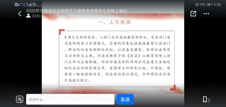 然后由史永娜老师详细介绍河南省职业院校实习备案模块,演示实习备案操作流程。