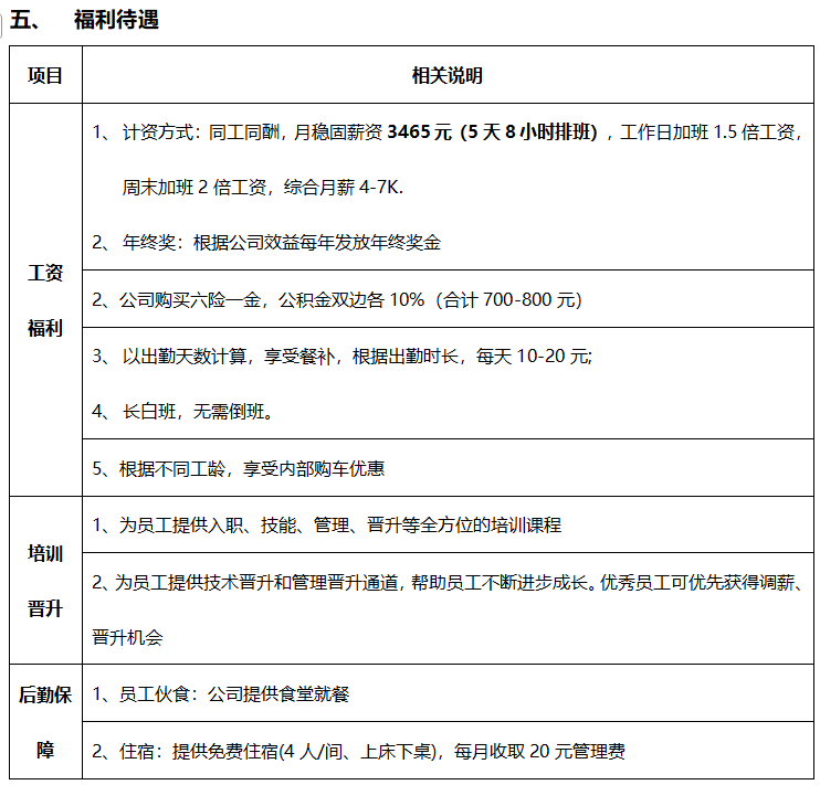 一、工资待遇(5天8小时)