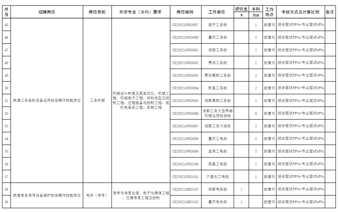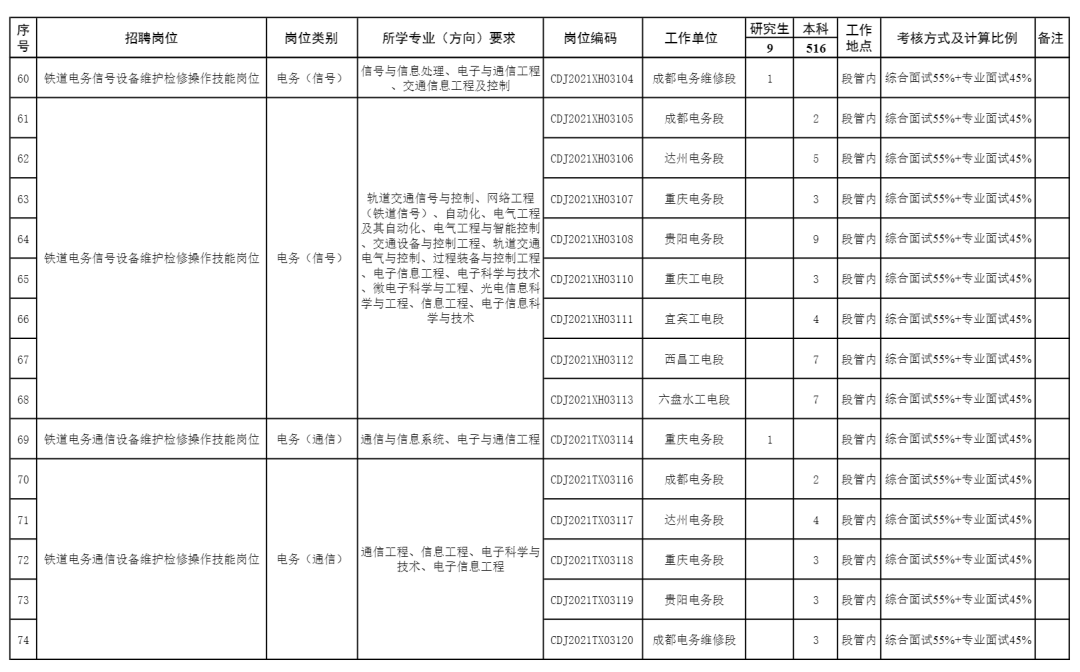 中国铁路成都局集团有限公司2021年度招聘高校毕业生公告(三)