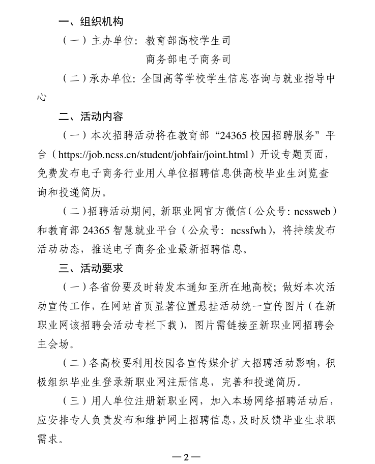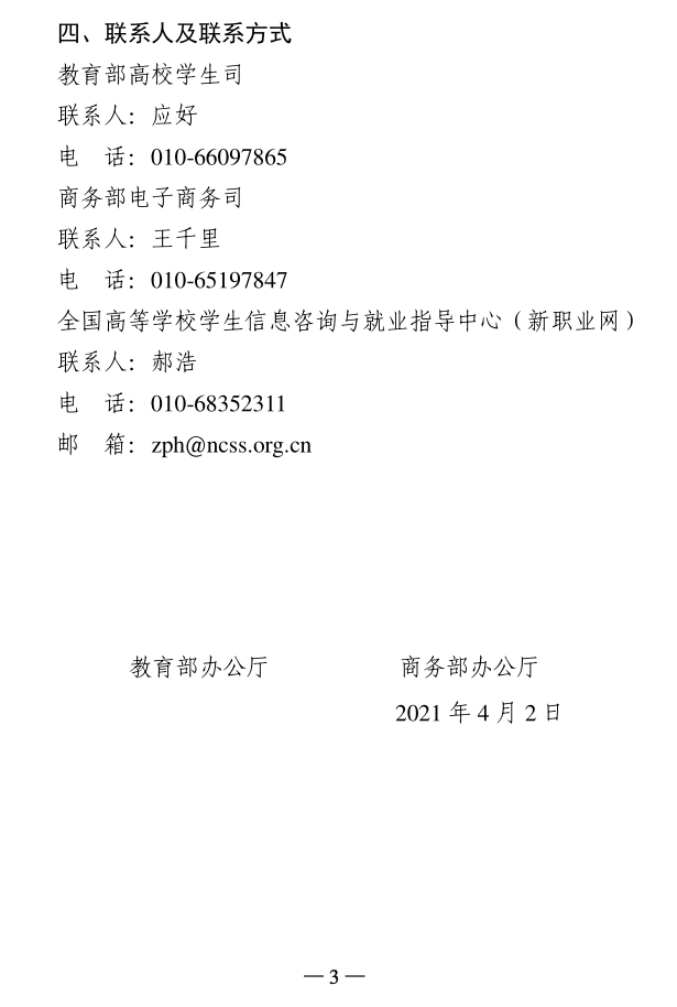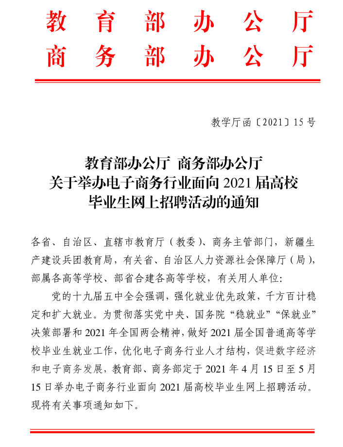 教育部办公厅 商务部办公厅 关于举办电子商务行业面向2021届高校毕业生网上招聘活动的通知