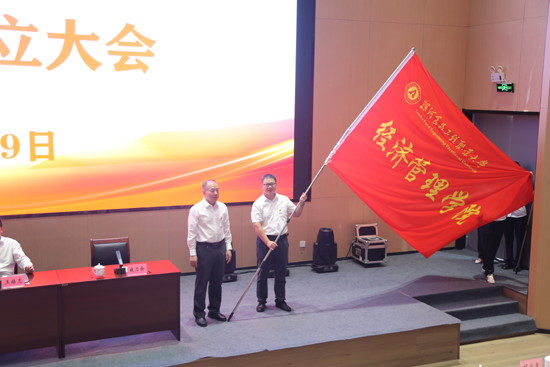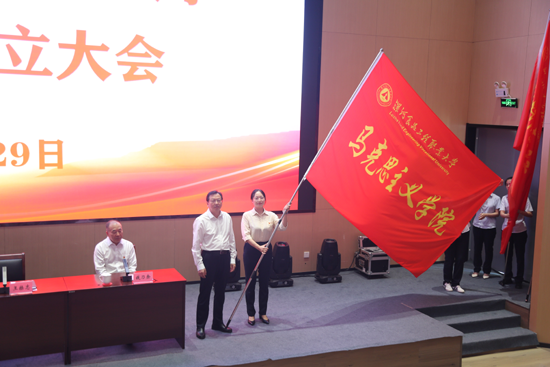 校领导詹跃勇、王操志、钱乃余分别为食品与生物工程学院、食品质量与安全学院、信息工程学院、智能制造学院、基础教学部、马克思主义学院、经济管理学院、营养烹饪学院、汽车工程学院代表授旗。