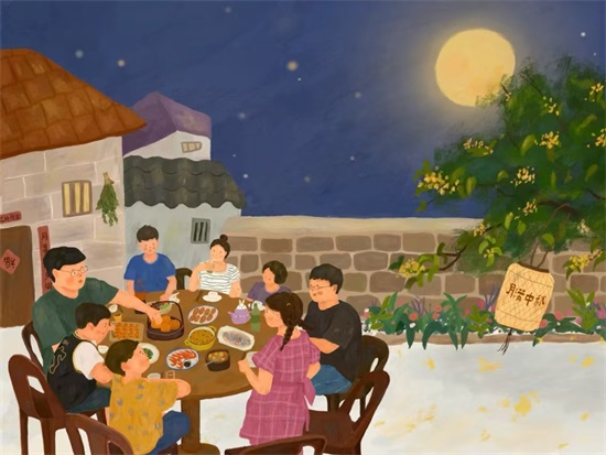 中秋节时,云稀雾少,月光皎洁明亮,民间除了要举行赏月、祭月、吃月饼祝福团圆等一系列活动,有些地方还形成了例如舞草龙、砌宝塔等特殊的习俗。中秋之夜,一家人团团围坐,食月饼,饮美酒,赏明月,话团聚,天伦之乐融融,为人生一大乐事。