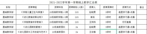 2021/08/20基础教学部学前教育专业在线教学实施方案