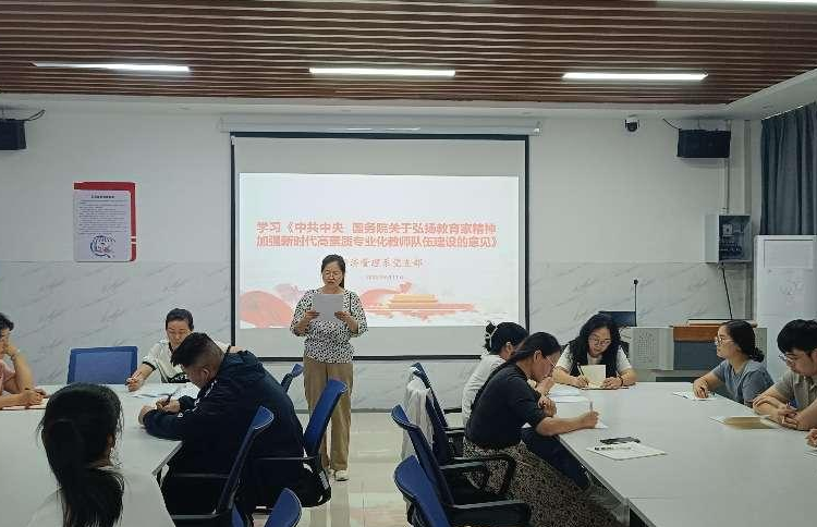在学习过程中,党支部书记丁超君同志宣读了中共中央、国务院印发了《关于弘扬教育家精神加强新时代高素质专业化教师队伍建设的意见》,提出了加强教师队伍思想政治建设、涵养高尚师德师风等内容。她强调,这是弘扬践行习近平总书记提出的中国特有的教育家精神的重要举措,是新时代、新征程强教强师的纲领性文件,为各地各校加强教师队伍建设指明了前进方向,提供了行动指南。党支部全体党员深入学习贯彻习近平总书记关于教育的重要论述,大力弘扬教育家精神,将教育家精神融入教师队伍建设全过程,着力建设一支高素质教师队伍。
