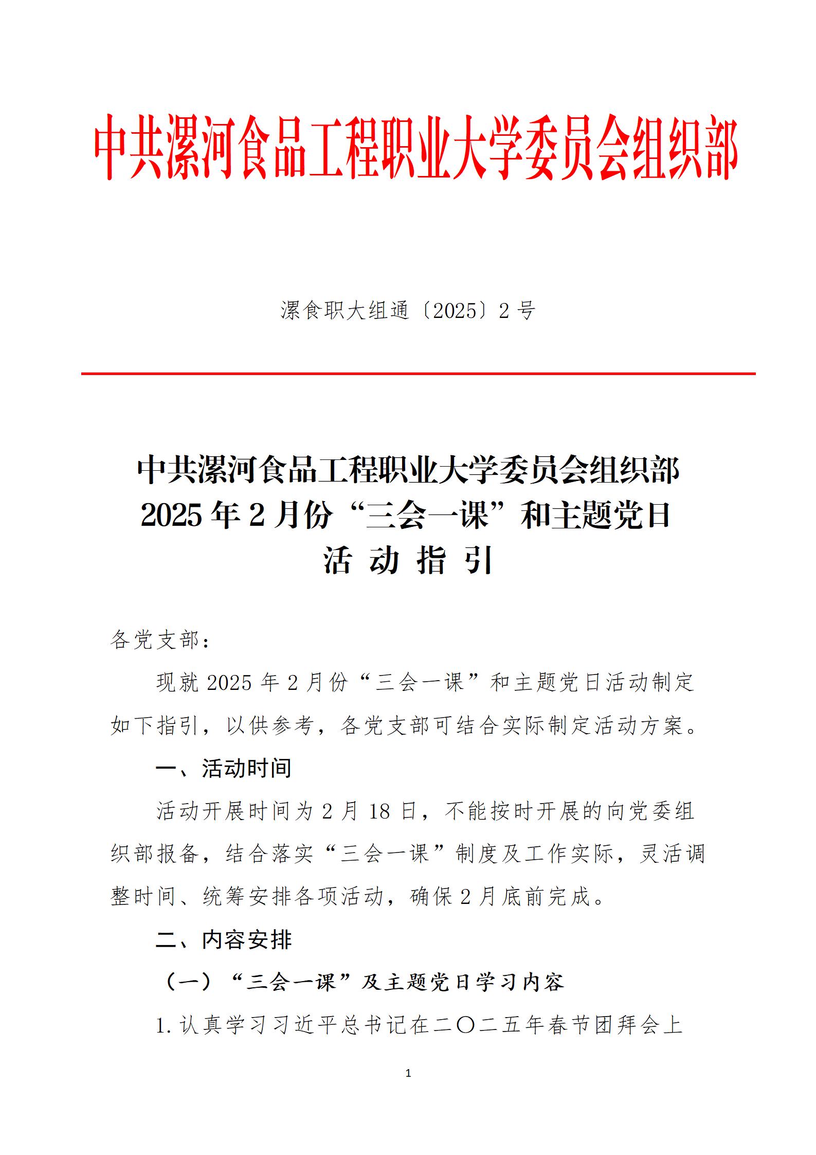 2025/02/15中共漯河食品工程职业大学委员会组织部 2025年2月份“三会一课”和主题党日活动指引