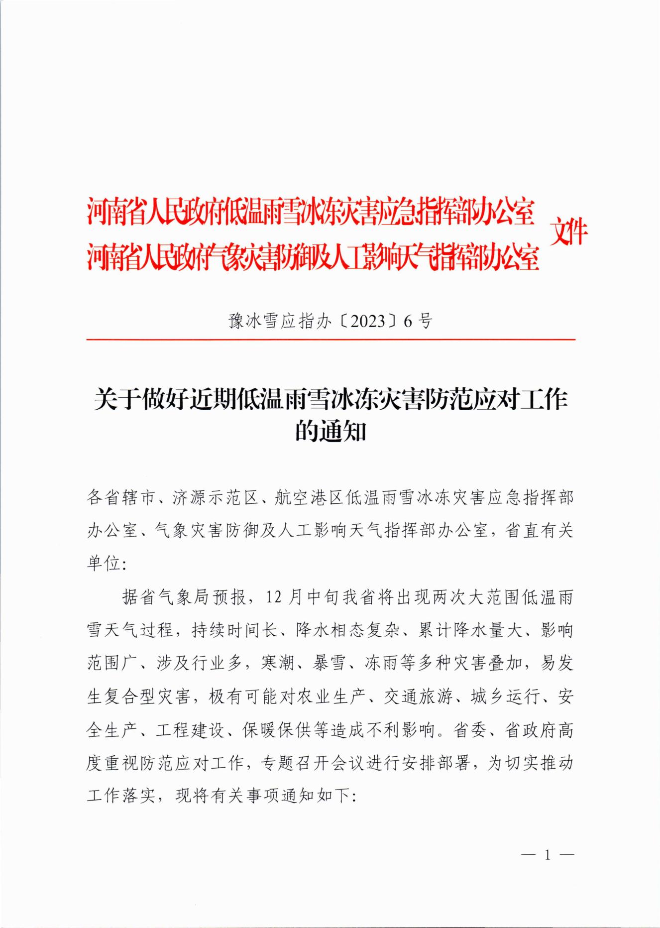 2023/12/10关于做好近期低温雨雪冰冻灾害防范应对工作的通知