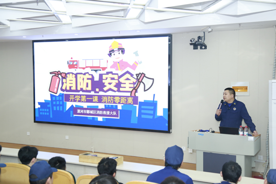 2025年2月18日,漯河食品工程职业大学在许慎餐厅三楼多媒体教室开展“开学第一课”消防安全宣传活动。漯河市郾城区消防救援大队走进我校为100余名师生上了一堂精彩的消防安全教育专题课。