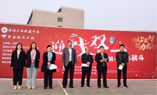 为迎战“京东11·11全球好物节”,2019年11月08日上午,京东电商学院举行了“双十一”誓师大会。出席大会的领导有学院大学生创新创业中心主任于伟华、经济管理系主任曹源、京东电商学院院长霍文政、京东电商学院副院长卜志军、京东集团校园运营中心经理刘杰、京东校园运营中心经理陈洁。