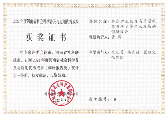 2022/11/06经济管理系荣获河南省社会科学普及与应用优秀成果奖两项