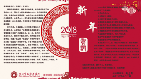 满怀收获的喜悦,满载成功的荣耀,我们挥手告别了奋进的2017年,阔步迈入更加美好的2018年。值此辞旧迎新之际,我谨代表经济管理系,向关心和支持经管系发展的各级领导、企业界... 阅读(460)