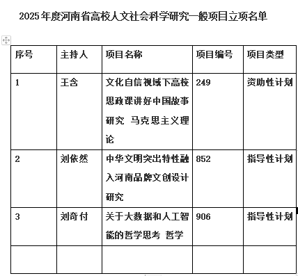 近日,根据河南省教育厅下发《关于2025年度河南省高校人文社会科学研究一般项目申报工作的通知》(教办社语〔2024〕94号)要求,经学校推荐、教育厅组织专家评审,2025年度我院3项获批立项,其中资助计划项目1项,指导计划项目2项。