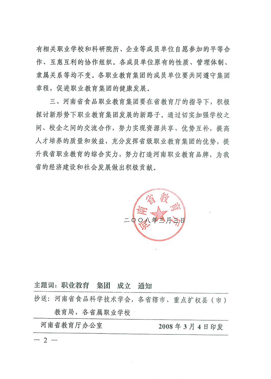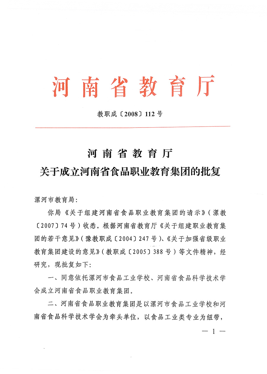 河南省食品职业教育集团-获河南省职业教育成果奖