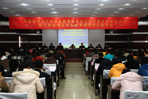 11月27日,河南省食品行业职业教育校企合作指导委员会成立大会暨省食品职业教育集团第四届年会在漯河食品职业学院举行,省工信厅总工程师陈振杰、省教育厅职成教处调研员魏世奎,省政府食品工业办公室督查处处长吴祖兴,漯河市政府副秘书长杨智勇,漯河市教育局党委书记、局长章光普等出席。