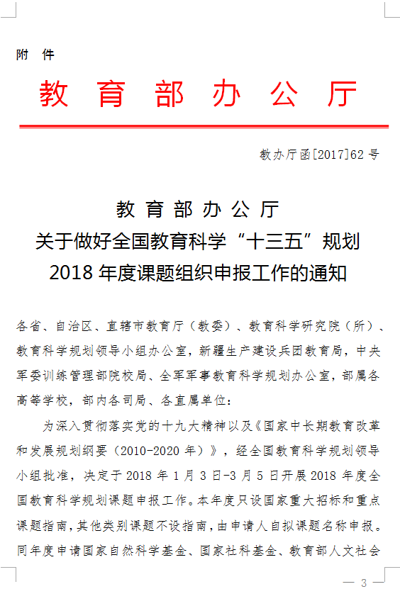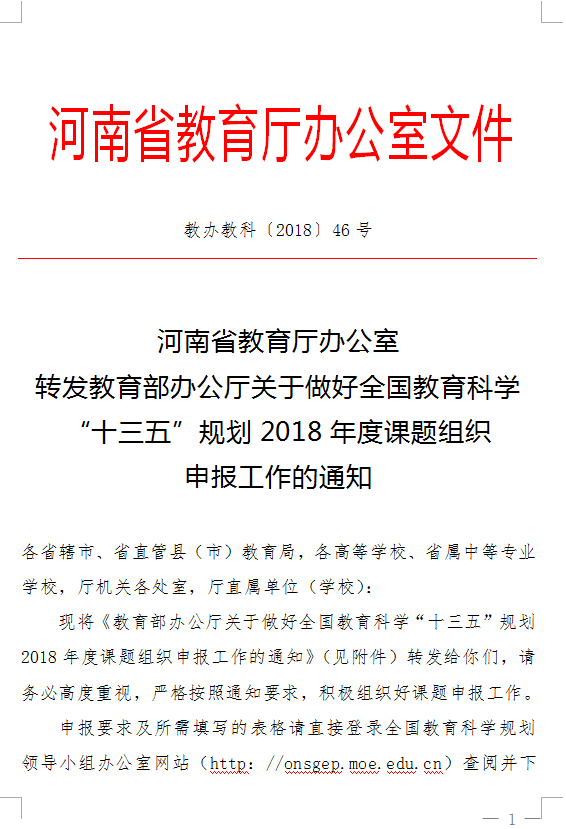 河南省教育厅办公室转发教育部办公厅关于做好全国教育科学“十三五”规划2018年度课题组织申报工作的通知