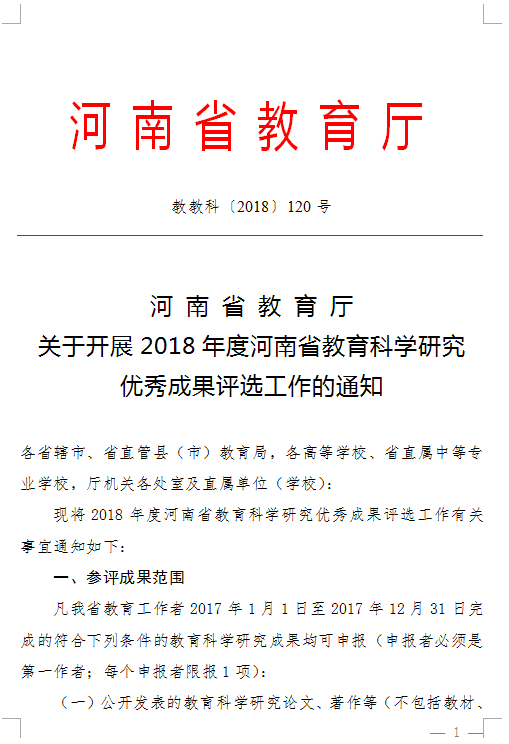 河南省教育厅关于开展2018年度河南省教育科学研究优秀成果评选工作的通知