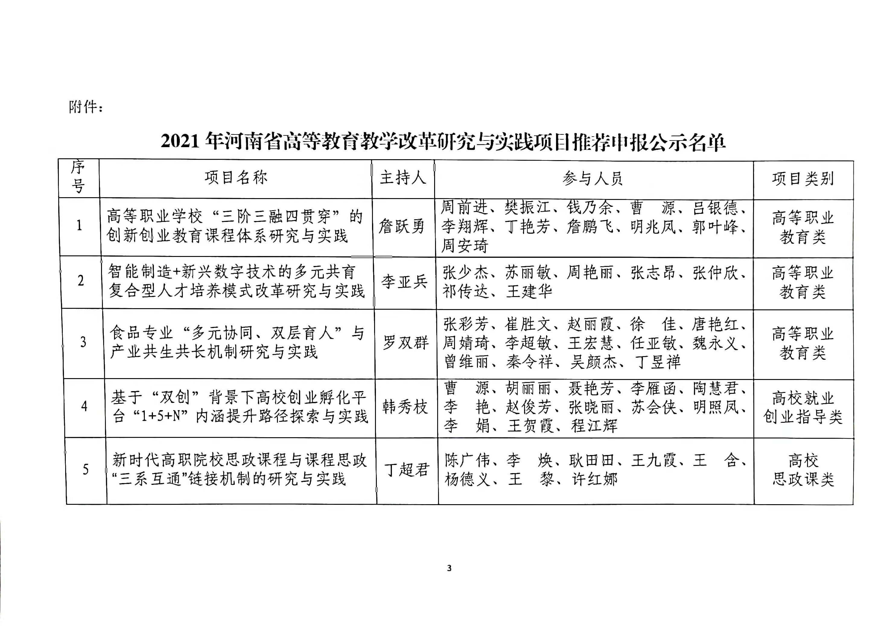 关于推荐申报2021年河南省高等教育教学改革研究于实践项目的公示