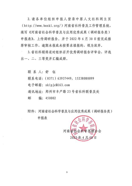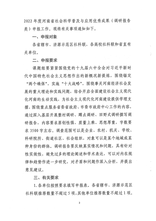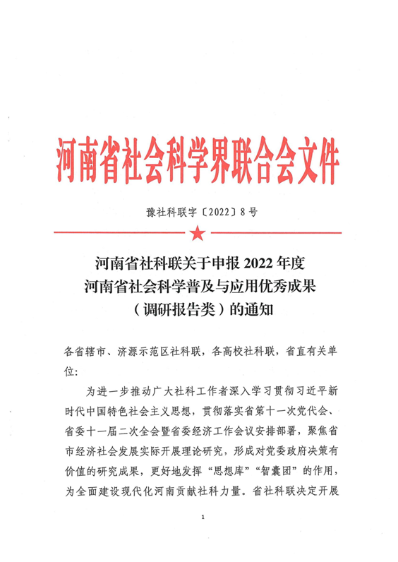 河南省社科联关于申报2022年度河南省社会科学普及与应用优秀成果(调研报告类)的通知