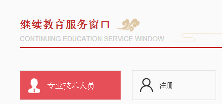 2、点击下方“继续教育服务窗口”中的“专业技术人员”→“注册”