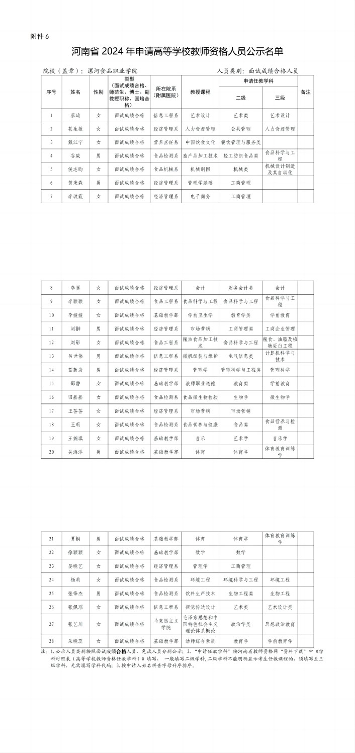 高校教资认定公示名单(面试合格人员)