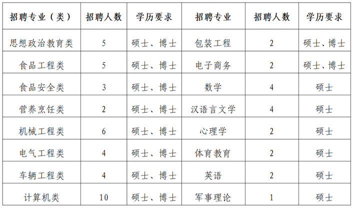 6.硕士研究生一般不超过35周岁,博士研究生一般不超过40周岁。具有副高级职称人员一般不超过45周岁,正高级职称人员一般不超过50周岁。具有相关工作经验的年龄可适当放宽。