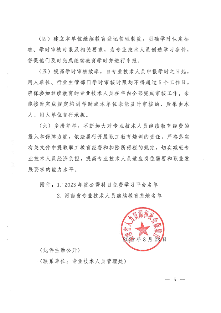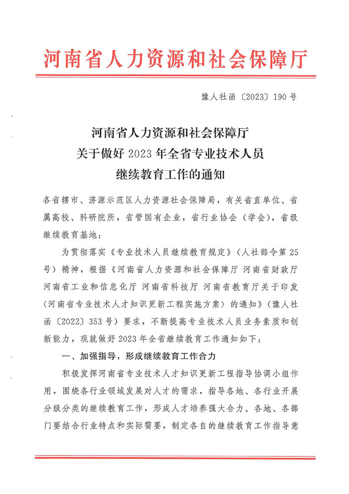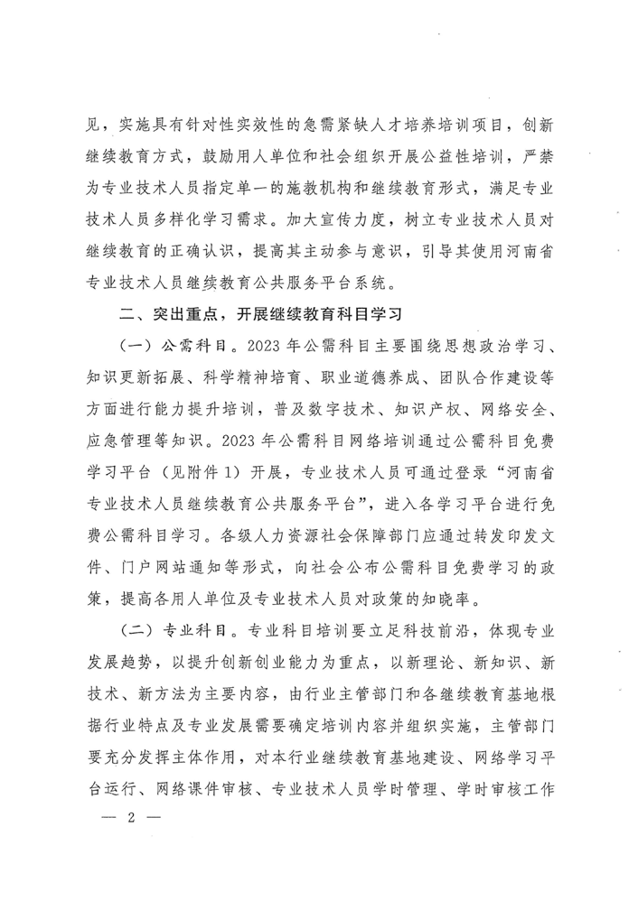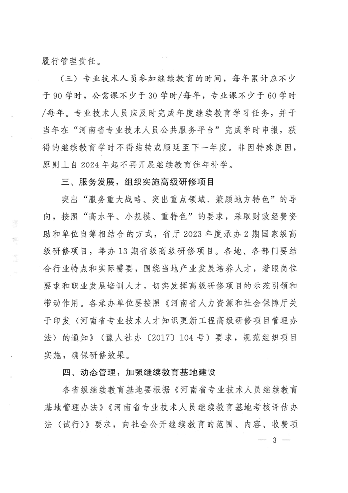 河南省人力资源和社会保障厅关于做好2023年全省专业技术人员继续教育工作的通知