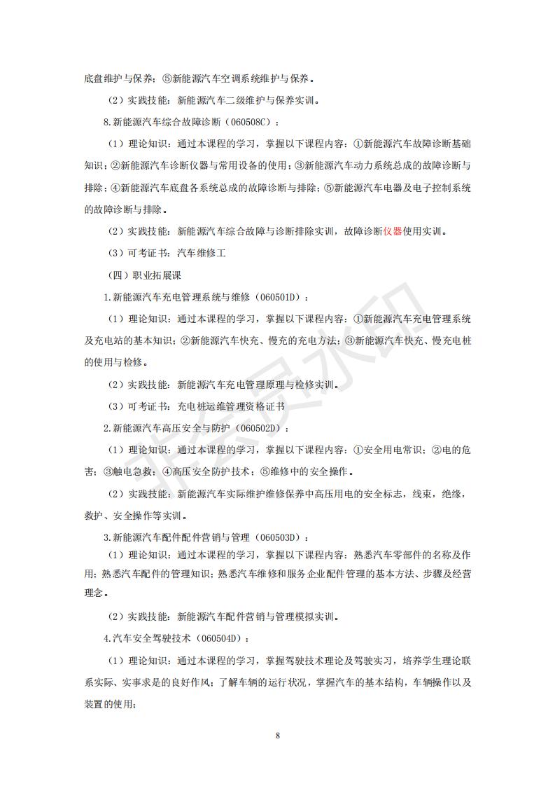 精品课程 特色校本课程 教学管理文件 实训实践 人才培养