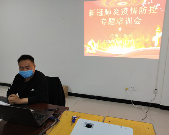 2020年4月27日上午8时,汽车工程系全体教师在A栋教学楼一楼会议室李主任的带领下,进行了防疫专班工作会和新冠肺炎疫情防疫培训会。