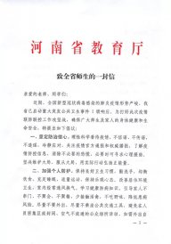 致全省师生的一封信 亲爱的老师、同学们: 近期,全国新型冠状病毒感染的肺炎疫情形势严峻,我省已启动重大突发公共卫生事件I级响应。为打好此次疫情联防联控工作攻坚战,确保... 阅读(1021)