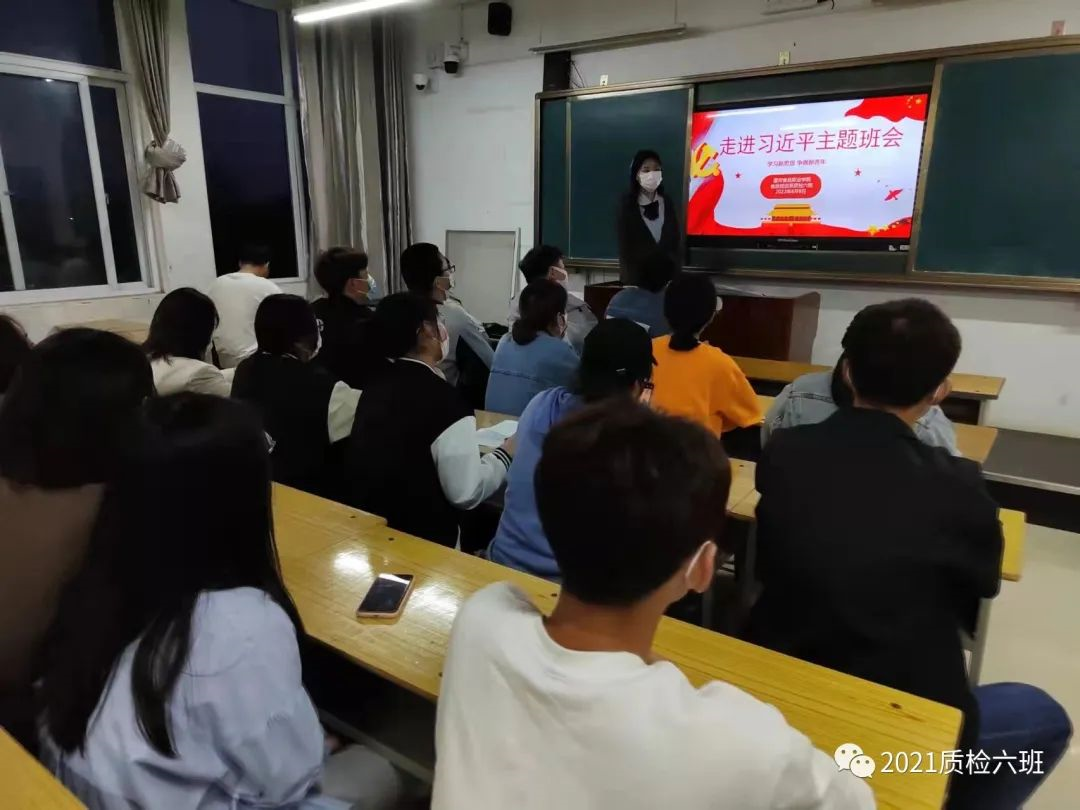 肖保龙 2021质检六班 为迎接党的二十大胜利召开和建团100周年,漯河食品职业学院食品检测系21级质检六班于2022年4月7日晚19:00在D311教室召开了“走进习近平”主题班会。 此次主题班会,由班长张杉杉主持,团支书杨雨新主讲,大致分为五个篇章。第一篇章:党史是中国共产党的领导不断走...... 阅读(687)