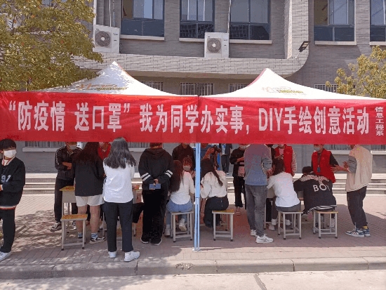 为弘扬抗疫精神,传递抗疫力量,消除同学们对疫情的焦虑感,丰富同学们校园管控期间的业余文化生活,在2022年4月7日我院信息工程系团总支在校园超市门口开展“防疫情送口罩,我为同学办实事”手绘口罩活动,据悉,此次活动将会开展两天。活动现场,同学们用颜料、画笔、彩绘、涂鸦的方式在口罩上创作图案。彩绘作品以抗击疫情为主题,参与...... 阅读(361)
