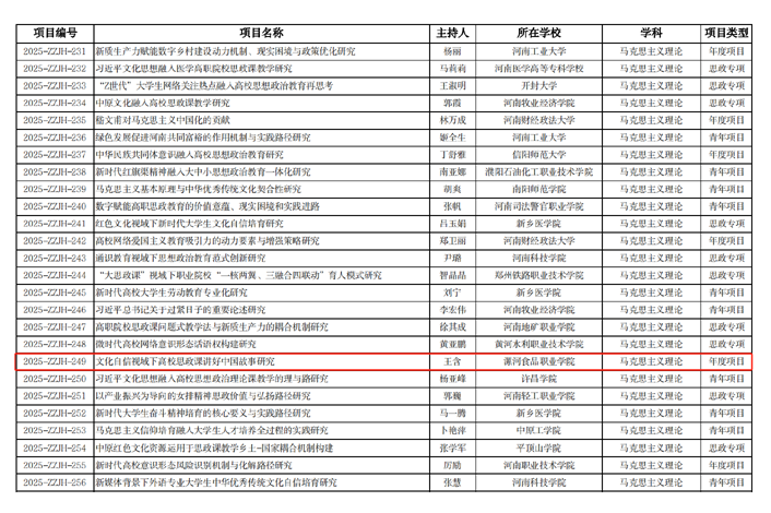 2024/06/21漯河食品工程职业大学2025年度河南省高校人文社会研究一般项目获批立项