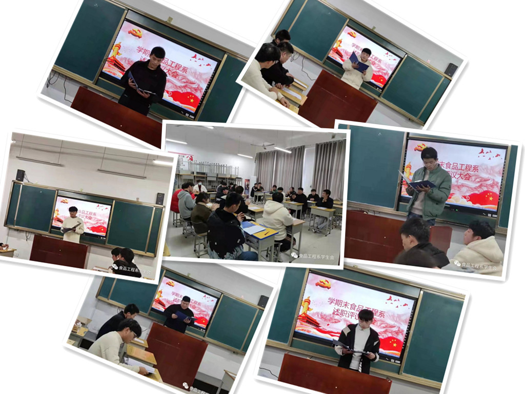 时间不知不觉,我们后知后觉,转眼间2021年即将过去,漯河食品职业学院食品工程系学生骨干述职大会在2021年12月21日下午15:00于E207召开,此次述职评议大会由系学生会主席团成员带领召开,全系学生会成员与各班团支书共同参与。邀请党支部书记李林平书记和团支部书记刘玉青老师及19级学生会李彤、秦永泰及院团委代表蒋若雨、院学生会代表胡梦珂作为评委。