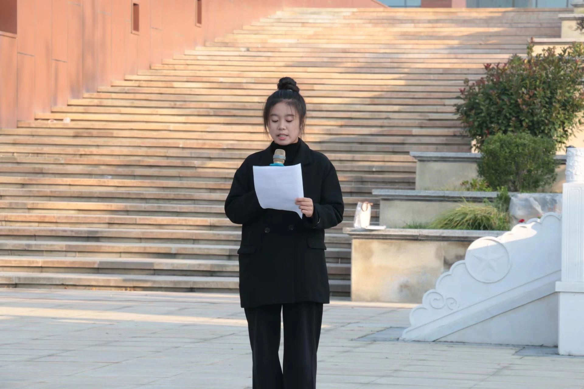 仪式第一项,国旗护卫队迈着整齐一致的步伐缓缓向升旗台走来。铿锵有力的踏地声,干脆利落的挥旗动作,伴着慷慨激昂的国歌鲜艳的五星红旗缓缓升起。当雄壮的国歌声响起师生们集体行注目礼用赤诚的目光追随着五星红旗,表达了对祖国的无限热爱和崇高敬意。仪式第二项,学生代表23级食品工程系一班尚美婷同学讲述对自己“争做文明学生,创建和谐校园”的理解。倡导同学们争做文明学生,严格规范自身行为,创建和谐美丽的校园环境。仪式第三项,我系党支部书记李林平在讲述校园文明的具体细节时引用了我系一班班惠姊同学的倡议书,更贴切明了的向在场全体师生讲述了对争做文明学生的具体要求,随后又向同学们讲述如何保护好我们的校园环境,创建出和谐的校园生活。