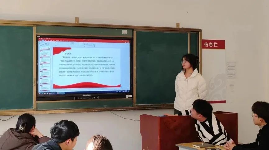 首先汇报的是食品工程系学生会执行主席冯家乐,他对2023年的工作进行了深入总结,并对工作中存在的不足之处进行反思。接着各团支书及学生会干部依次认真总结工作、反思问题,并开展讨论研究,共同规划未来工作。