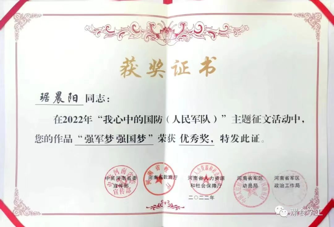2023/03/14喜报!在我心中的国防(人民军队)主题征文活动中我院喜获佳绩