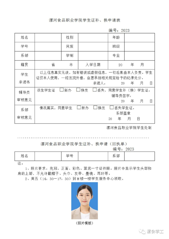 4、每周周二(14:30—17:30)提交学生证补(换)申请表,周五(14:30—17:30)领取学生证。