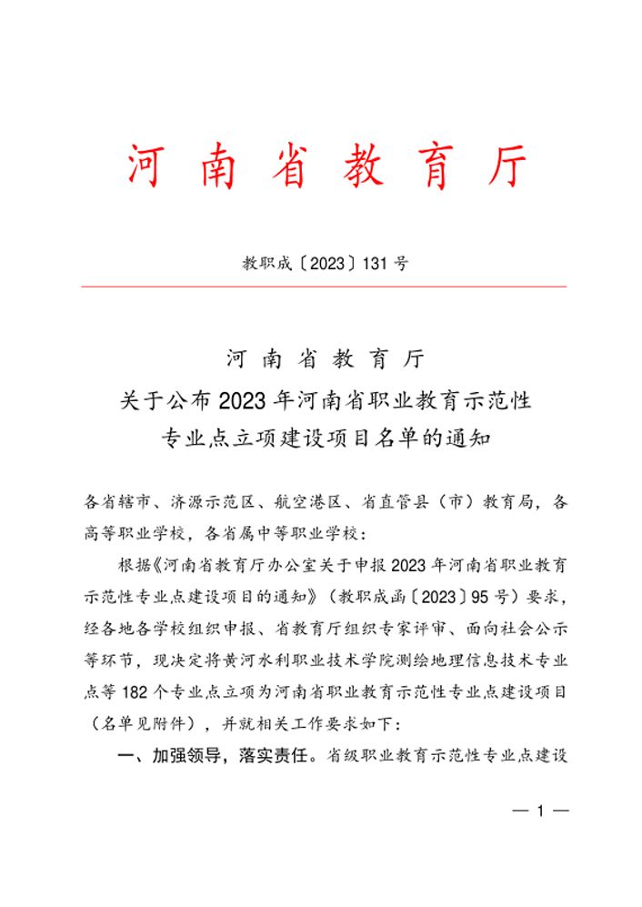近日,河南省教育厅发布了《关于公布 2023 年河南省职业教育示范性专业点立项建设项目名单的通知》(教职成〔2023〕131 号)。食品检测系食品检验检测技术专业获批河南省职业教育示范性专业点立项建设项目,食品检验检测技术”专业获批示范性骨干专业点。