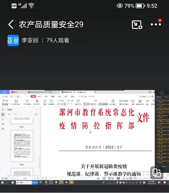 2022年5月7日-9日食品检测系任课教师结合当前疫情防控的严峻形势及省内外学生被感染的案例,利用线上教学对全系学生进行一次防疫规范课、警示课、纪律课教育。同时,辅导员也采用线上的方式召开班会对学生进行相关教育引导。通过这次防疫规范课、警示课、纪律课教育,进一步加强校园管控,压实系部和班级责任,提升师生防范意识,防止疫...... 阅读(1409)