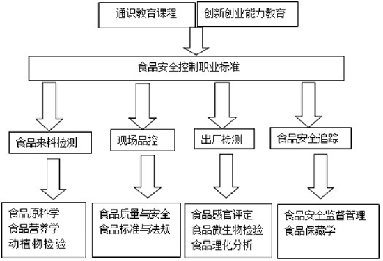 结合中标第三方检测服务有限公司的检测类别和项目,提出“创新应用型”人才培养目标,创新主要体现在学生发现问题、分析问题和解决问题的能力方面;应用主要体现在学生能够掌握食品分析检测、食品质量控制和食品监督管理的基本理论知识和实践技能等方面,从而培养学生“从农田到餐桌”和“精检测—强控制—善管理”的食品安全立体化思维和能力。