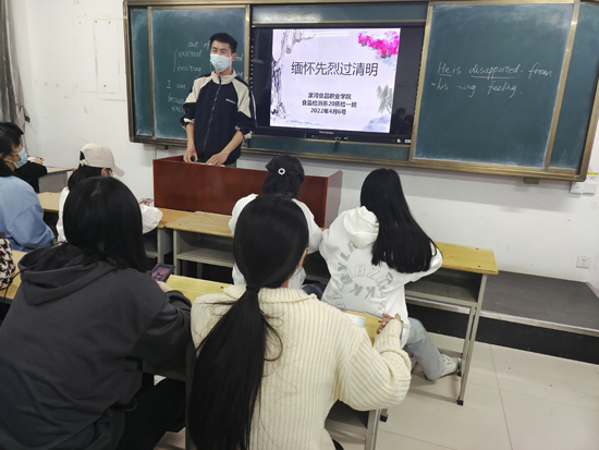 漯河食品职业学院食品检测系于2022年4月5号20级各班开展了以“缅怀先烈过清明”的主题班会,主讲人为20级各班班长。今年我们要特别关注一下我们的那些革命先烈,他们用自己鲜活的的生命为我们争取来了多么辉煌的的今天,他们为了国家付出了太多太多。