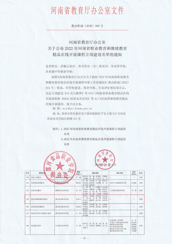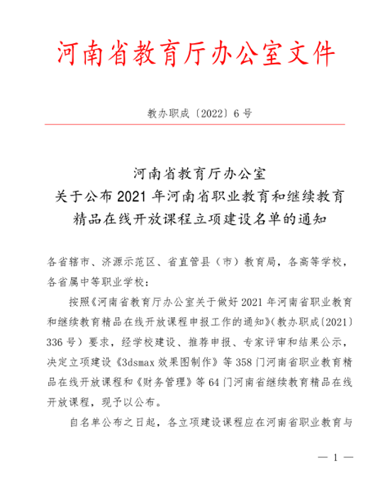 2023/11/09喜报!专业建设成效显著,我系再获1门河南省职业教育在线精品课程立项