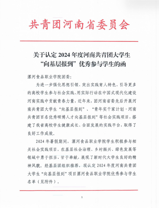 为进一步强化思想引领、突出实践育人特色,引导更多的高校学生参与社会实践,用实际行动在中国式现代化建设河南实践中贡献青春力量。近年来,团河南省委先后开展河南共青团大学生“向基层报到”、“青年实干家计划·河南共青团百名优秀硕博人才向基层报到”等社会实践项目,搭建了我省高校学生健康成长、全面发展的实践平台,取得了良好工作成效。
