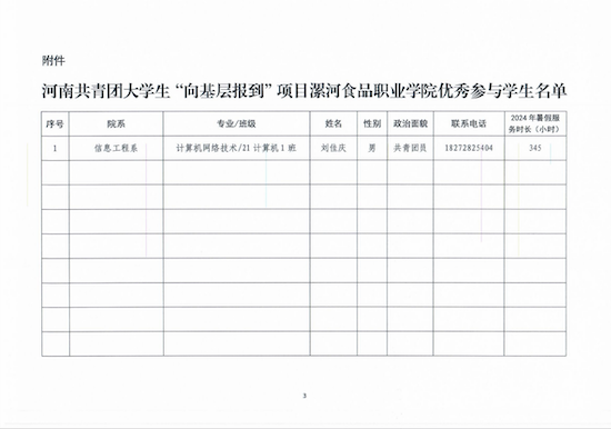 2024年暑假期间,我校学子刘佳庆被团省委认定为优秀参与学生。