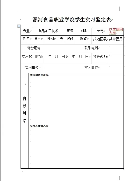 实习鉴定表填写说明